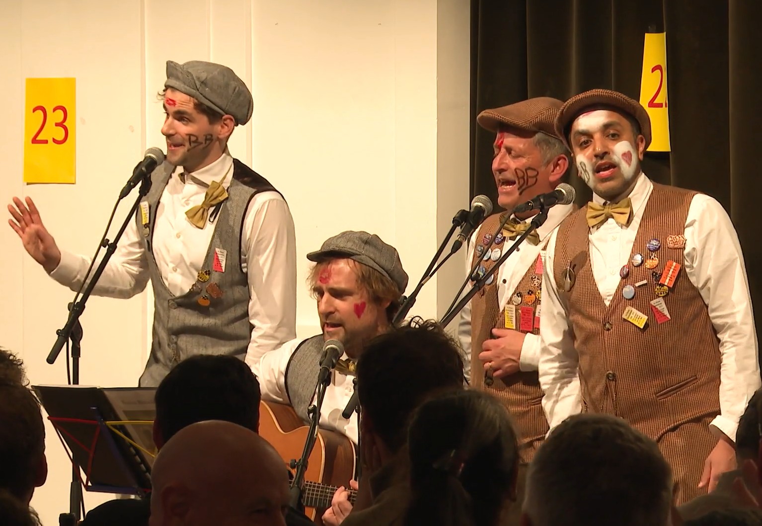 Die smarten "Jungs" da Domat sind seit zwei Jahren am Churer Schnitzelbankobig dabei. Mit ihrem Charme und feinen Gesang bringen sie vor allem Frauenherzen zum Schmelzen. Sie beweisen, dassĀ "Jugend" und "Schnitzelbank" sich nicht gegenseitig ausschliessen. Im Gegenteil: Sie haben Chur im Sturm erobert.