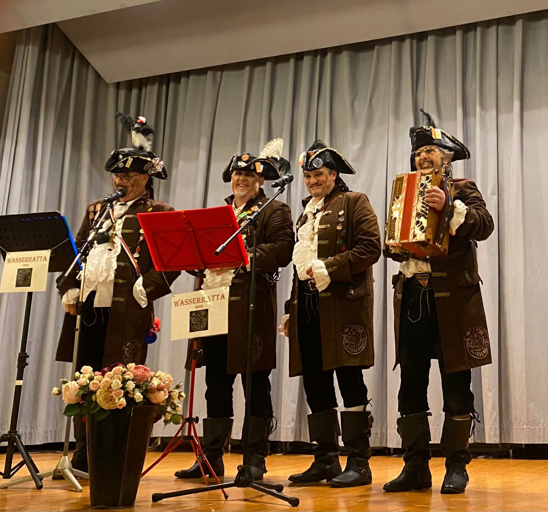 D'Wasserratta ist die älteste noch aktive Schnitzelbankgruppe - auch wenn immer wieder in neuer Zusammensetzung. Ihre Vorliebe gilt dem Handfesten. Inzwischen hat die Gruppe den "Zweihänder" etwas zur Seite gelegt, was bei der Mehrheit der Zuhörenden positiv registriert wird. Die Gruppe zeichnet sich aus durch ihren Auftritt, die Vielfalt an Melodien und die guten Stimmen.